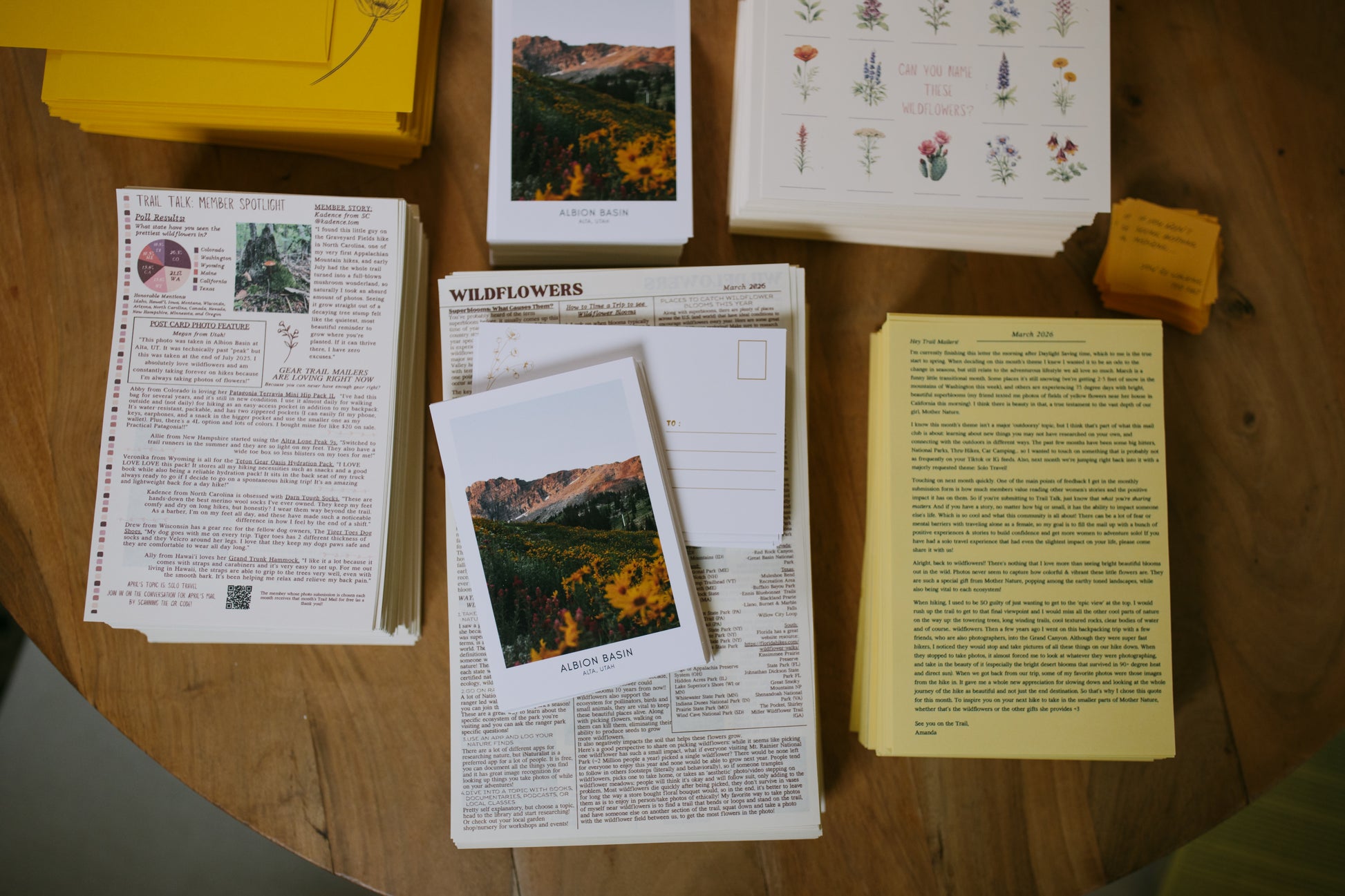 This idea came to me overtime as I noticed that I get excited when a piece of mail comes to my mailbox that has my actual name on it/came from another human. But these days, it really only happens when I’m getting a wedding invite or a thank you card. I used to love reading online newsletters, but my email is so flooded with daily emails that almost all have the incentive to try to sell me a product or have some other financial objective. So I had this idea… why not create a fun snail mail community who share the same passion for adventure as I do? And that’s how the Trail Mail Club was born.