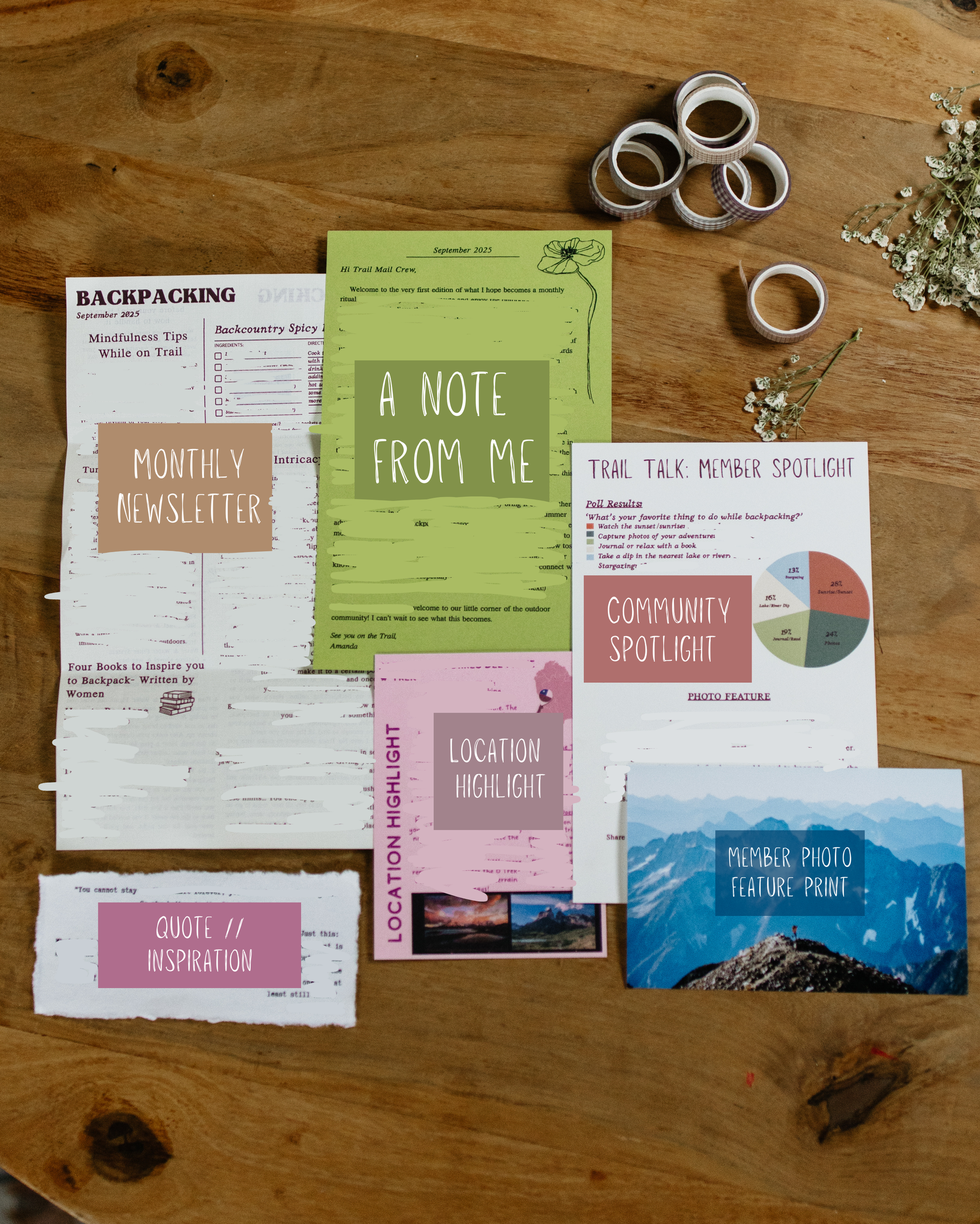 - Trail Talk: member spotlight featuring a monthly poll, gear recommendations, and a member photo & story feature